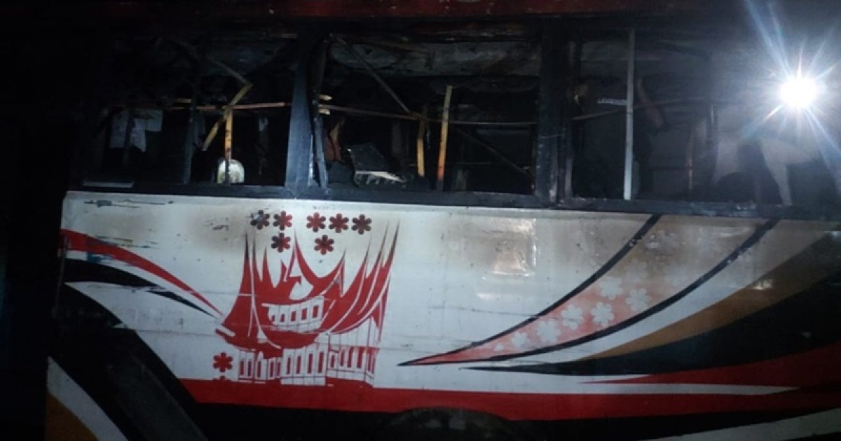 ধামরাইয়ে সড়কের পাশে দাঁড় করিয়ে রাখা বাসে আগুন