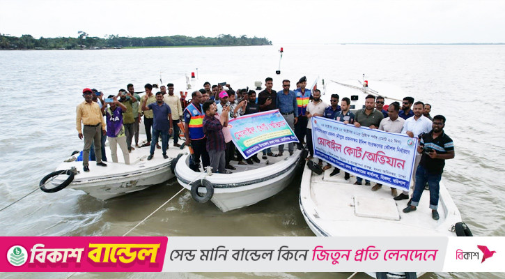 বরিশালে মা ইলিশ সংরক্ষণে নৌ-র্যালি: ড্রোন উড়িয়ে অভিযান