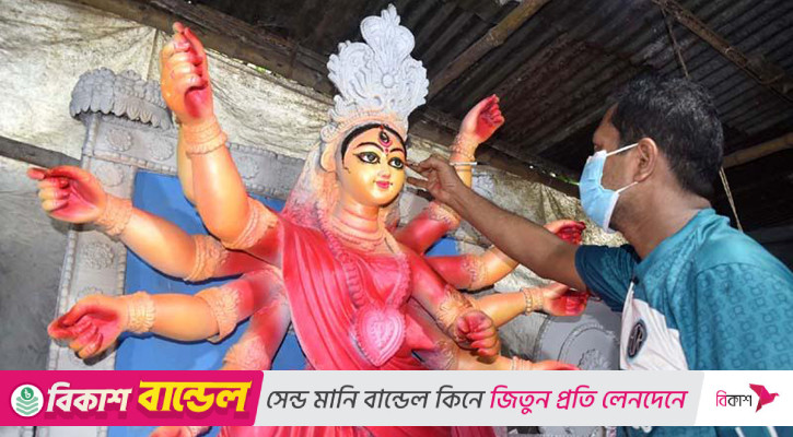 রং-তুলির আঁচড়ে সেজে উঠছে দেবী দুর্গা