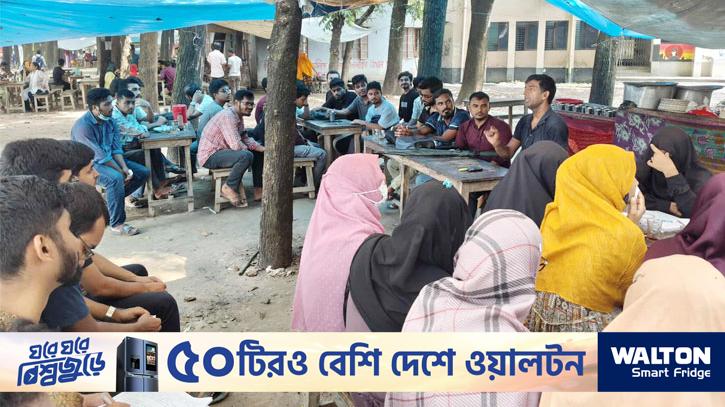রাবিতে কর্মবিরতি উপেক্ষা করে গাছতলায় ক্লাস নিলেন অধ্যাপক পিটার