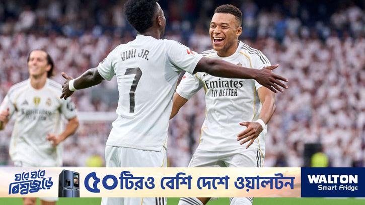 শনিবার রাতে সান্তিয়াগো বার্নাব্যুতে নিজেদের ছন্দ ধরে রাখল রিয়াল মাদ্রিদ। এদার মিলিতাও ও কিলিয়ান এমবাপ্পের অসাধারণ দুই গোলে এস্পানিওলকে ২-০