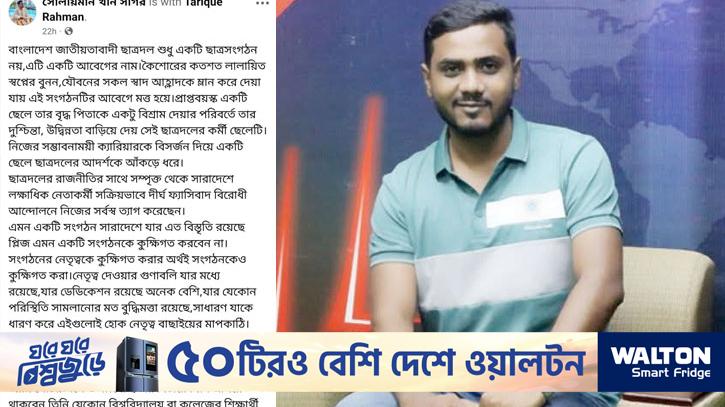 তারেক রহমানের কাছে নেতৃত্ব বিকেন্দ্রীকরণের আহ্বান জবি ছাত্রদল নেতার